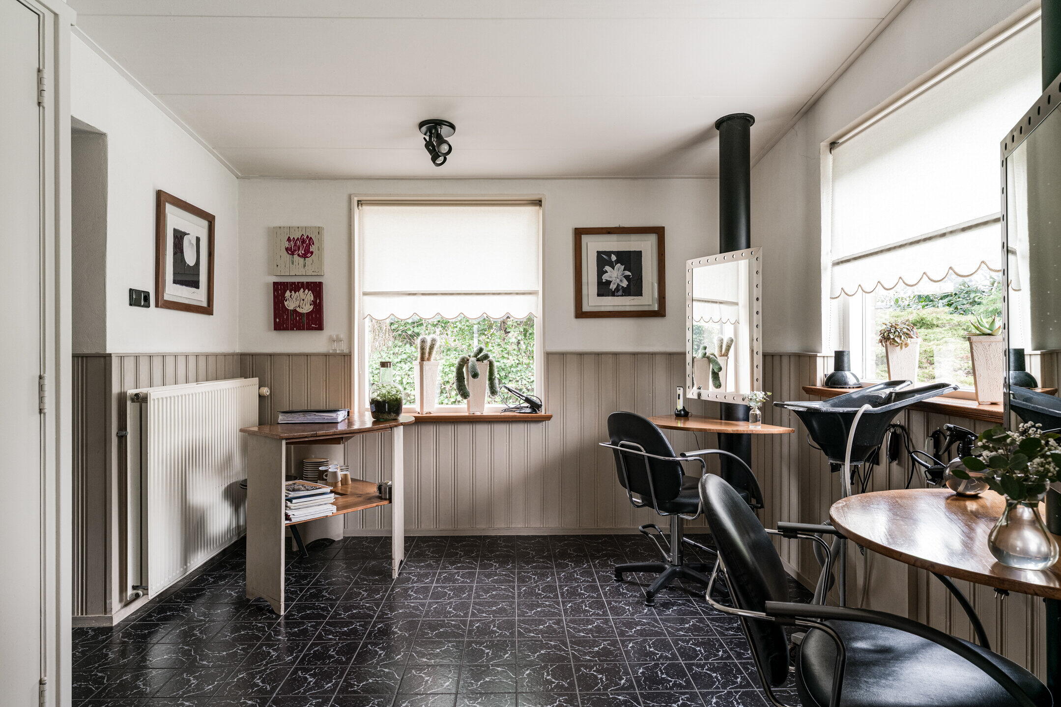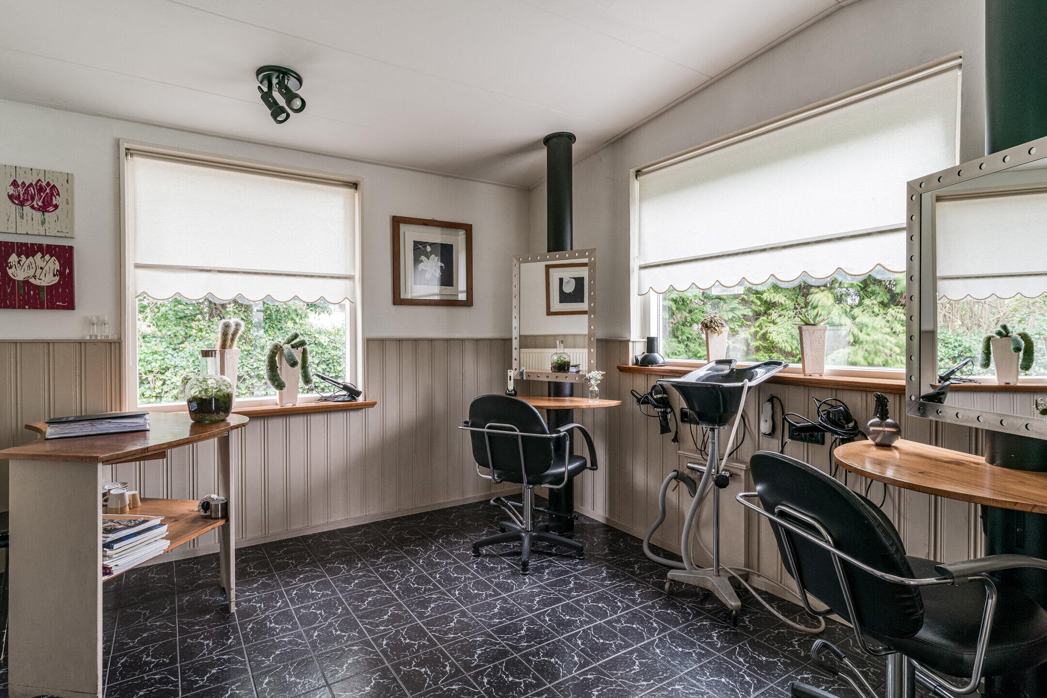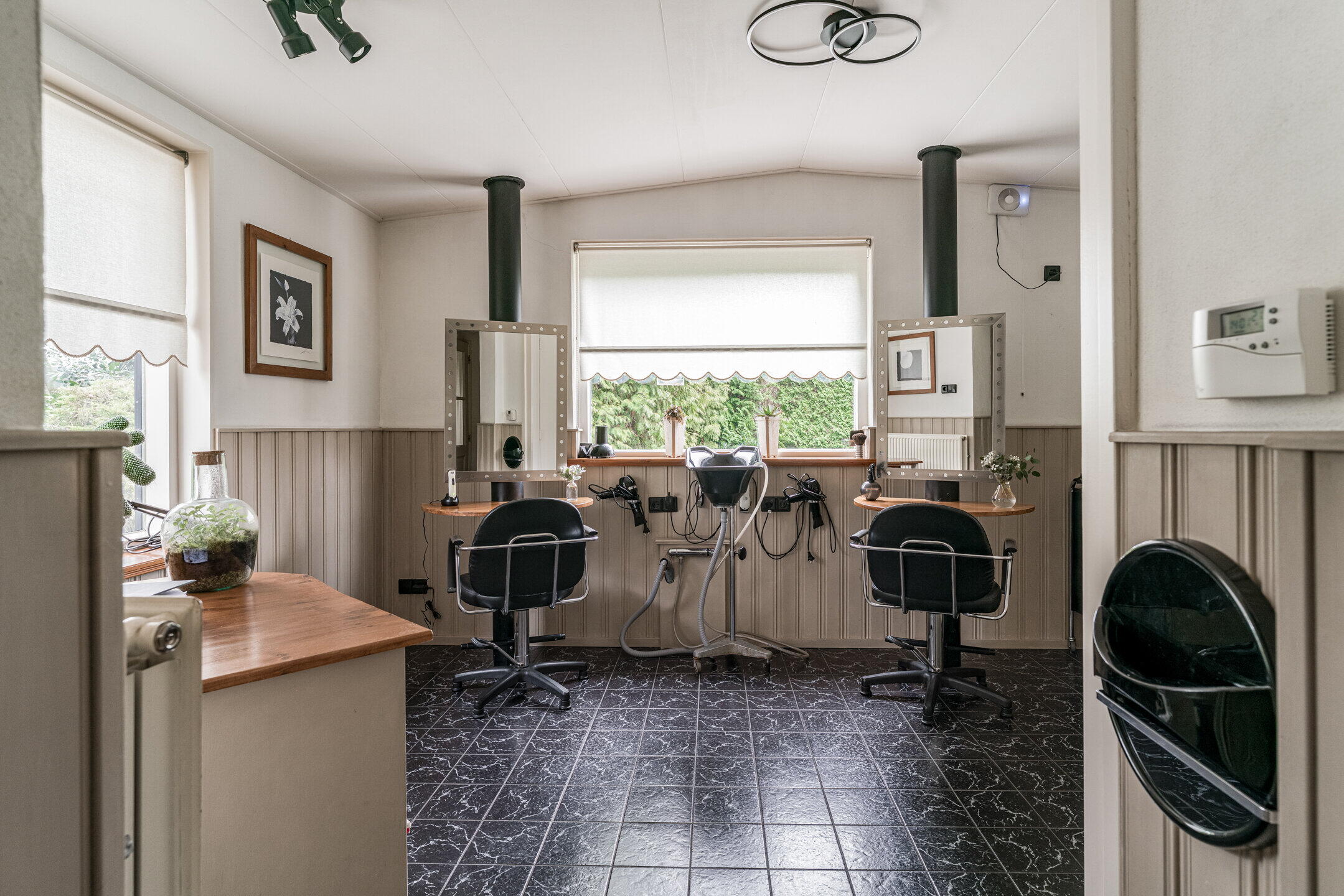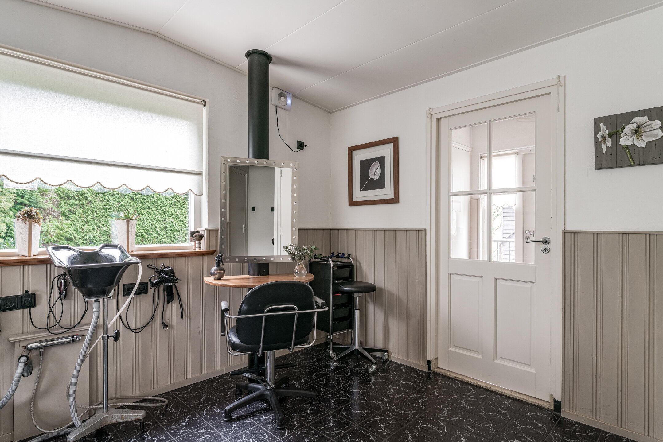 De inpandige praktijkruimte van circa 14 m² is voorzien van een plavuizenvloer, verwarming, warm- en koudwateraansluiting en afvoer. Zoals eerder gezegd, is de ruimte momenteel in gebruik als kapsalon en biedt uitstekende mogelijkheden voor werken aan huis.