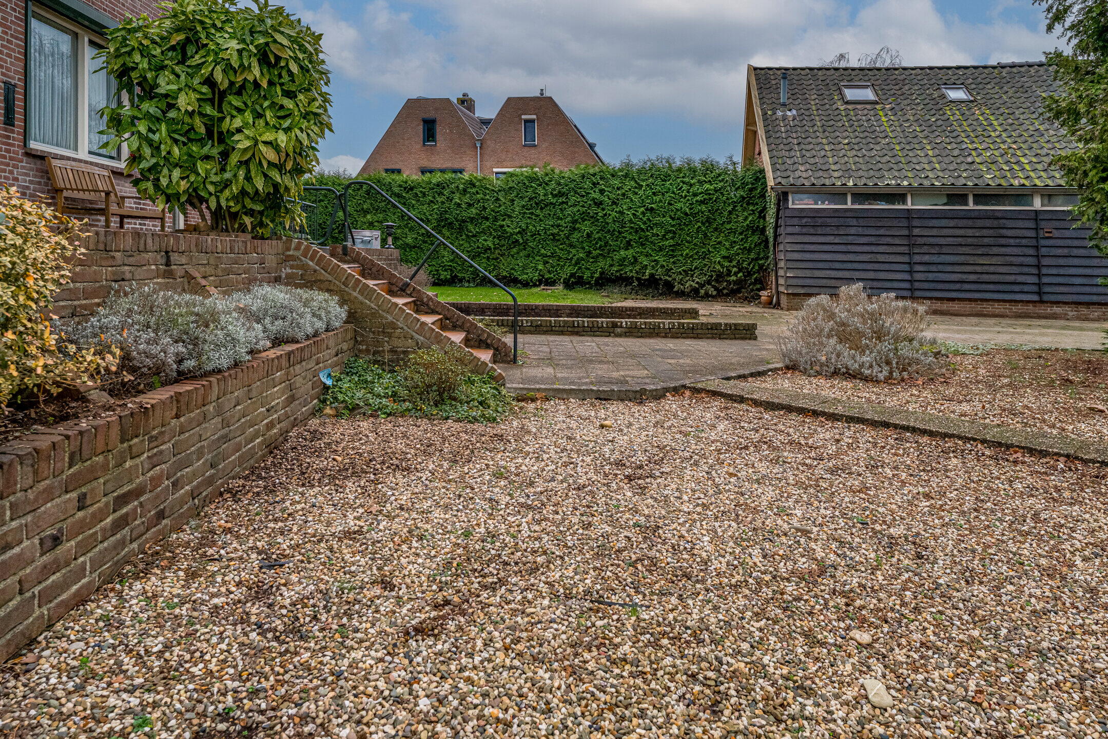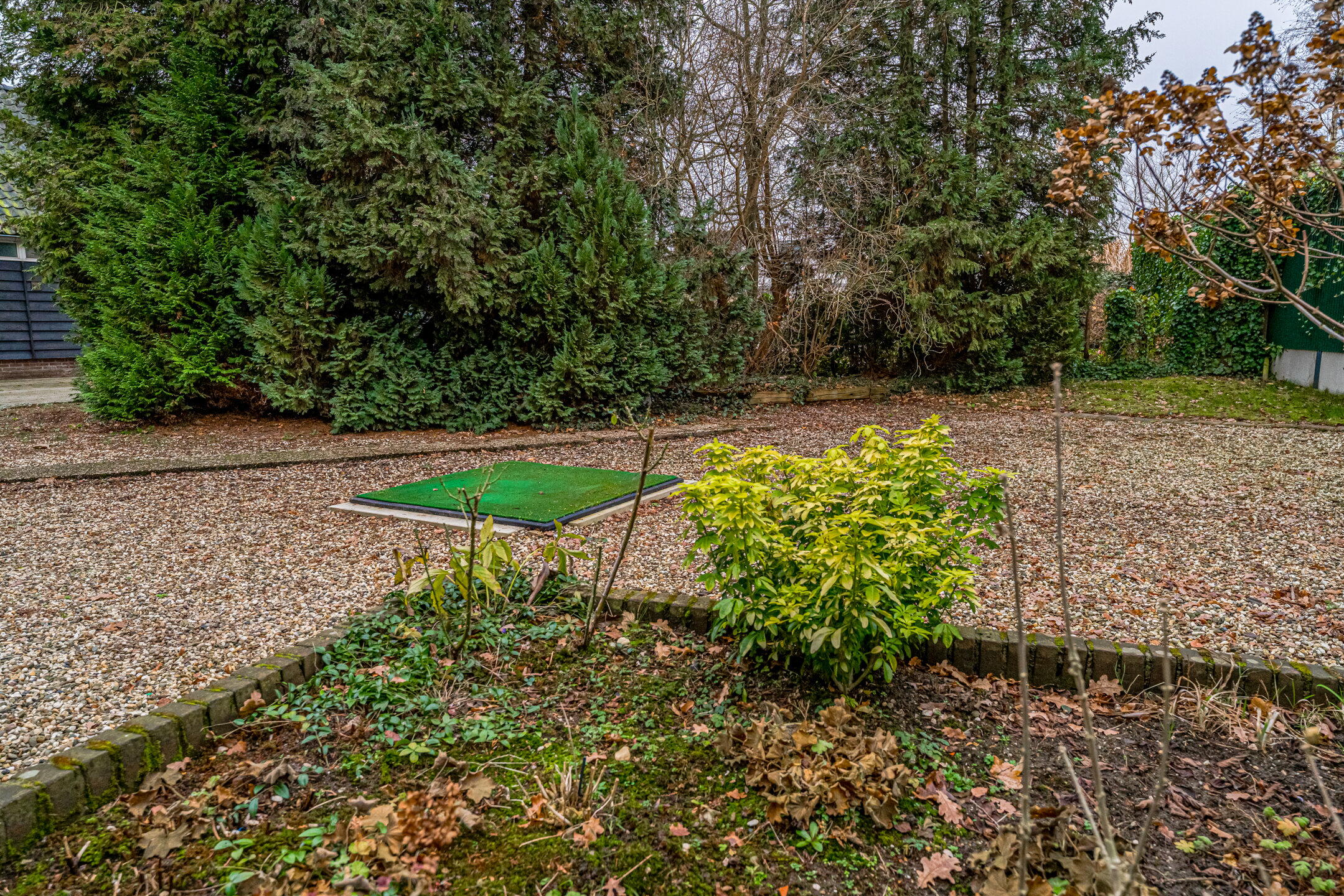 Rondom de woning ligt een onderhoudsvriendelijke tuin met altijd een fijne plek in de zon én diverse natuurlijke schaduwplekken. Dankzij de royale perceelgrootte en ligging geniet je hier van volledige privacy. Parkeren is geen enkel probleem: op de oprit is ruimte voor meerdere auto’s op eigen terrein.