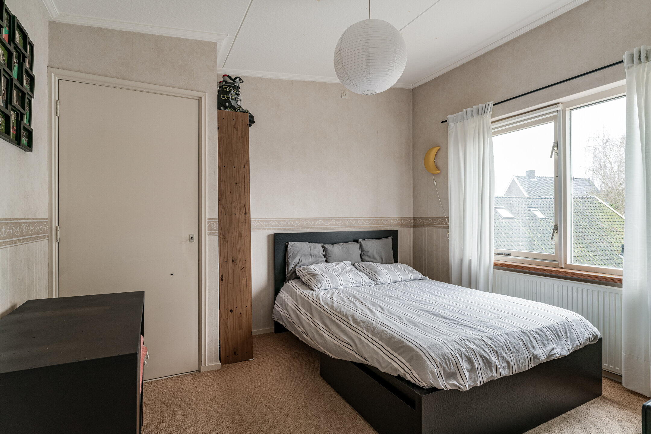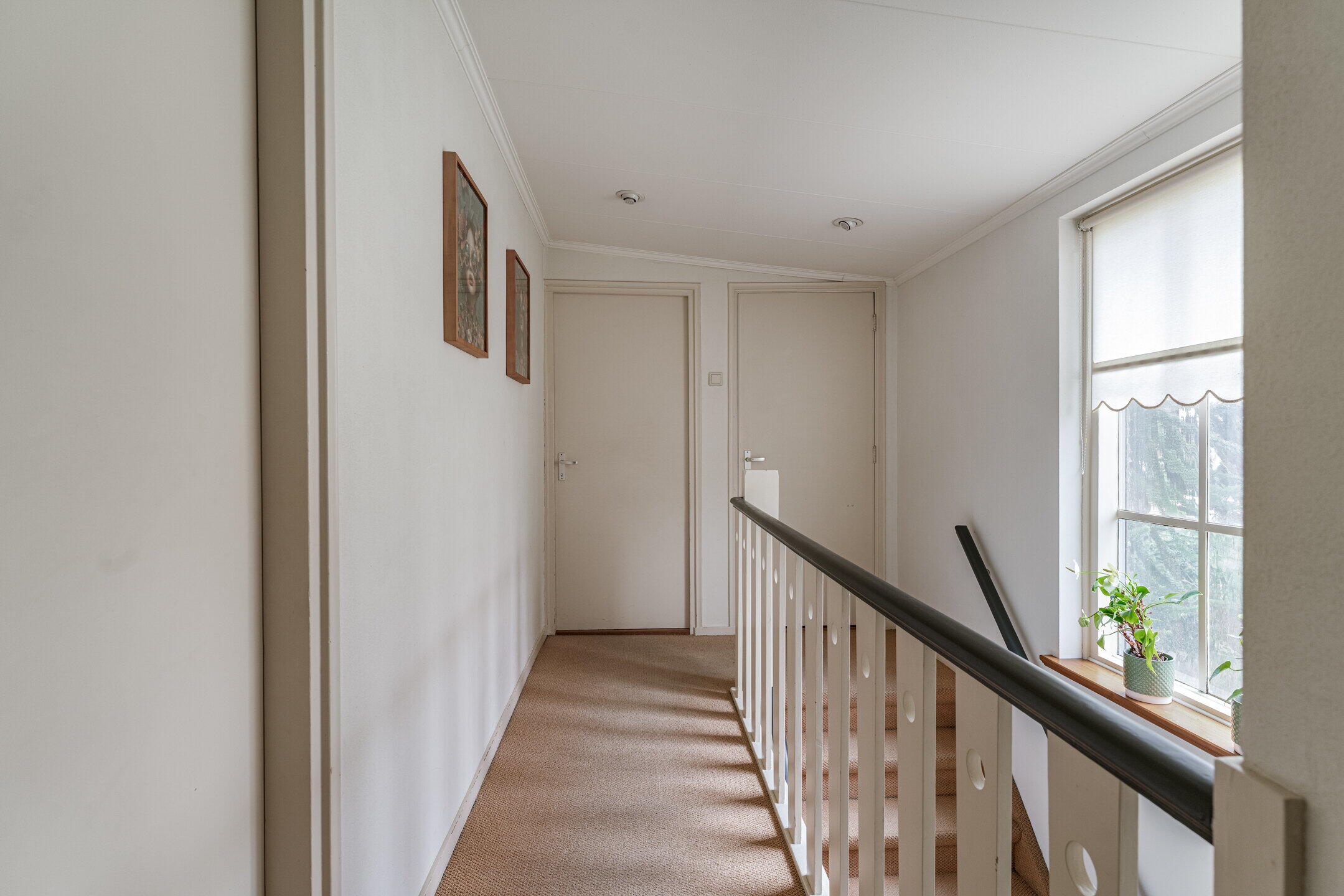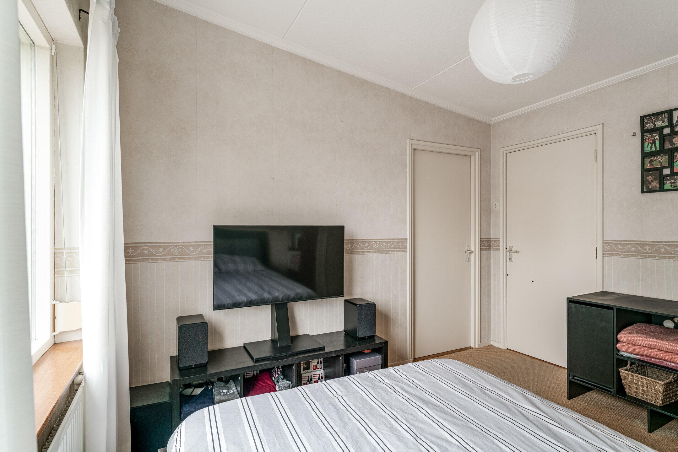 Overloop met inbouwkast. De royale ouderslaapkamer is voorzien van laminaatvloer, diverse garderobekasten en een deur naar het balkon. Daarnaast zijn er twee goed bemeten slaapkamers, beide eveneens met praktische inbouwkasten.